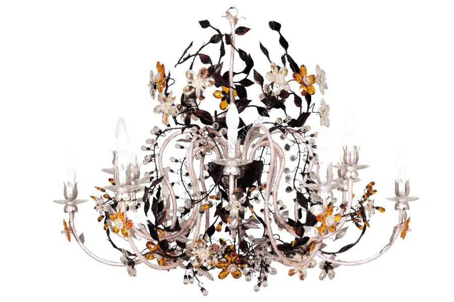 Mechini / Chandeliers / Wrought Iron with Clear and Coloured Crystal L267/12 Bis