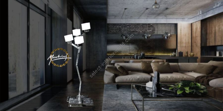 4 lights stand lamp in wrought iron with white glass lampshade
