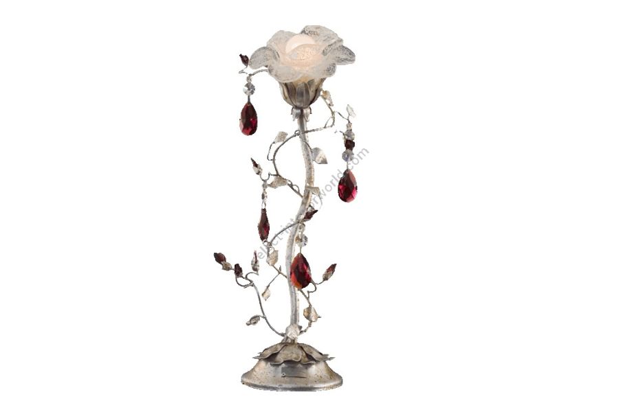 1 light table lamp in wrought iron with colored Bohemian crystal