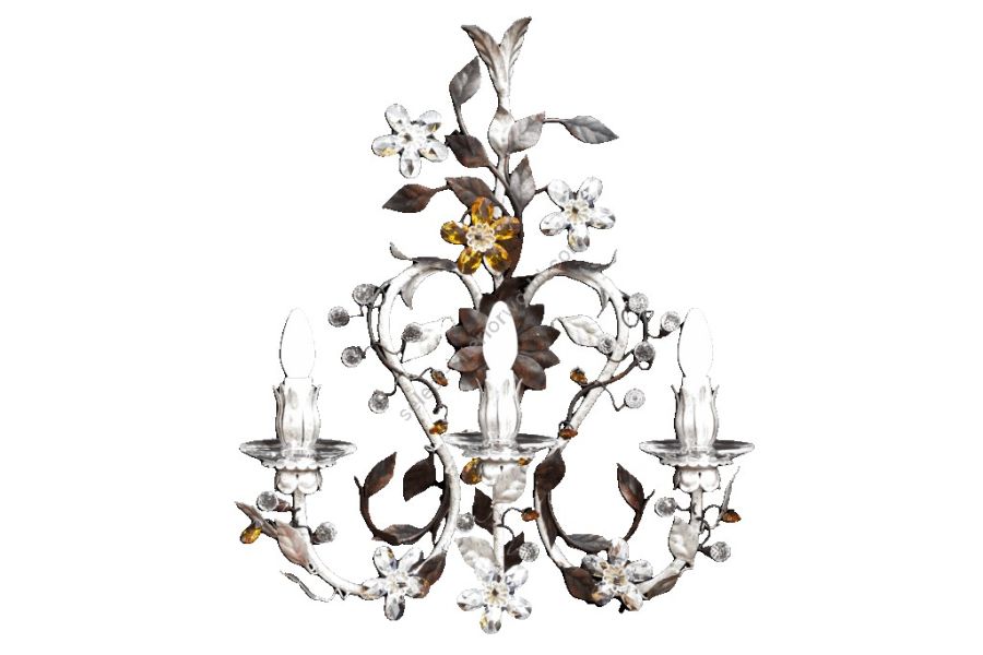 3 lights wall lamp in wrought iron with clear and colored Bohemian crystal