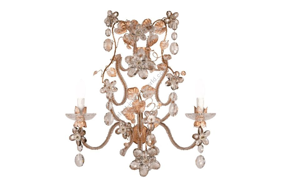2 lights wall lamp in wrought iron with clear and colored Bohemian crystal and clear pearl banding