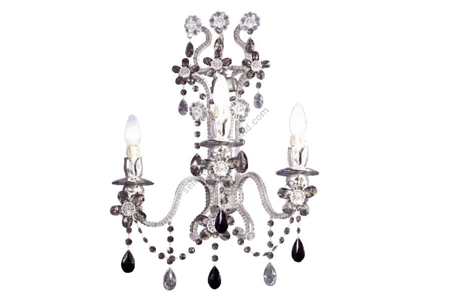 3 lights wall lamp in wrought iron with clear and colored Bohemian crystal