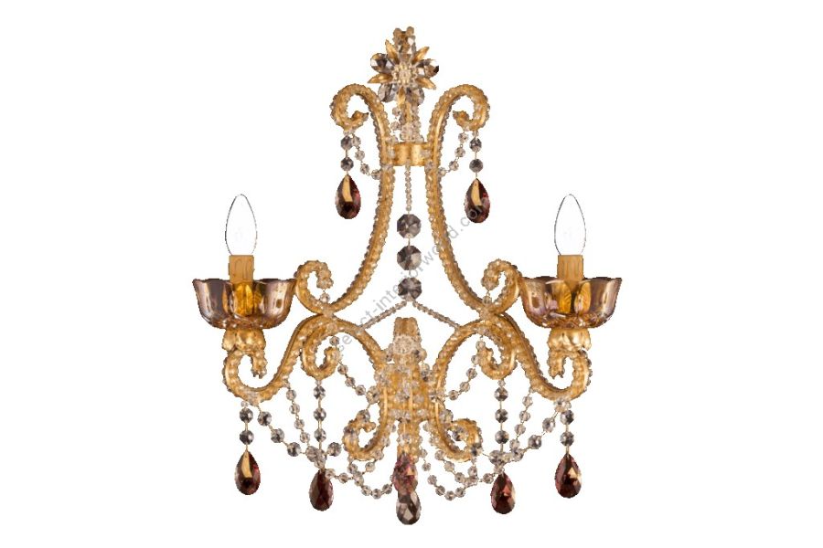 2 lights wall lamp in wrought iron with clear and colored Bohemian crystal and clear pearl banding