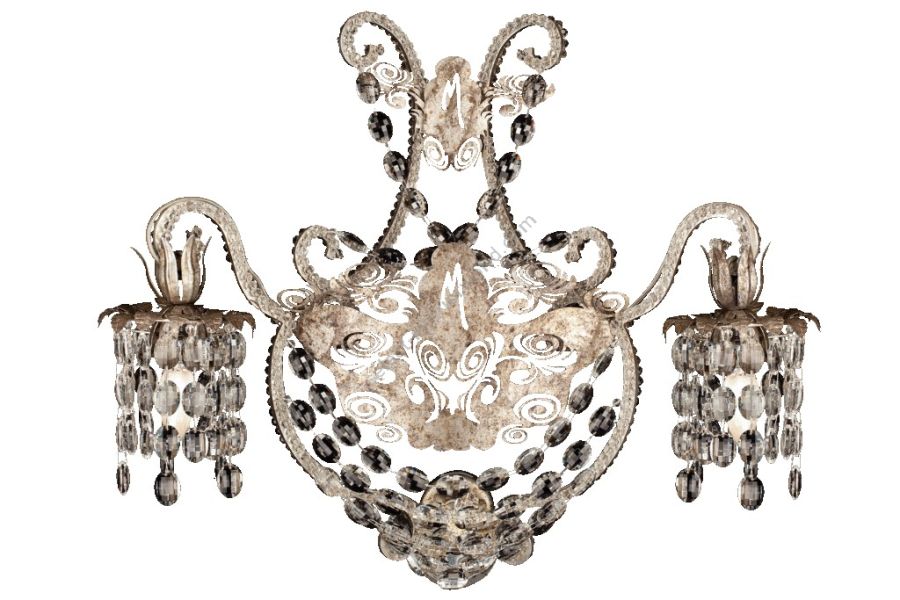 2 lights wall lamp in wrought iron with clear Bohemian crystal and clear pearl banding