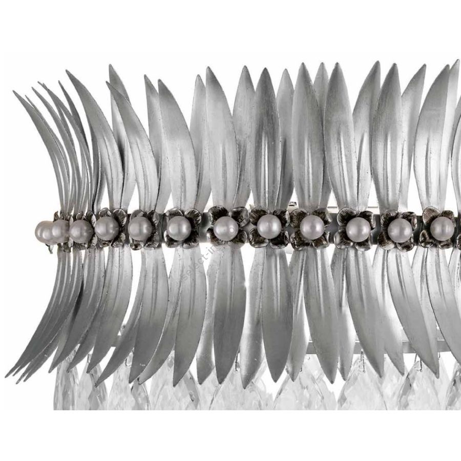Series of lamps with a frame of leaves in worked metal. The silver leaf finish, the crystal pendants and the characteristic design make the Leaves series particularly unique and modern.
