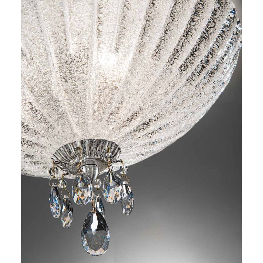 This range is realized in metal enriched with a silver and gold leaf finish and with blowned murano glass. Pleasantly enriched with crystals that gives light and brightness.