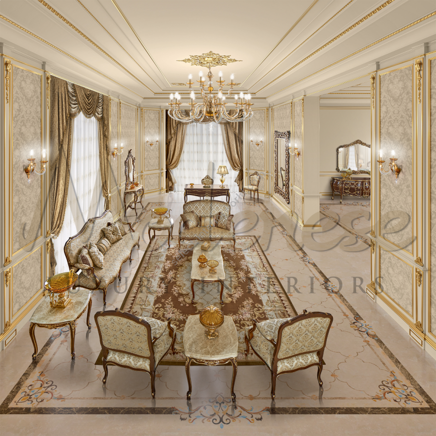 A chic beige classic armchair from Modenese Furniture Luxury Interiors is a type of chair that features a timeless and sophisticated design that is both stylish and versatile. It is typically upholstered in a beige-colored fabric, which gives it a neutral and understated appearance that can complement various decor styles.
