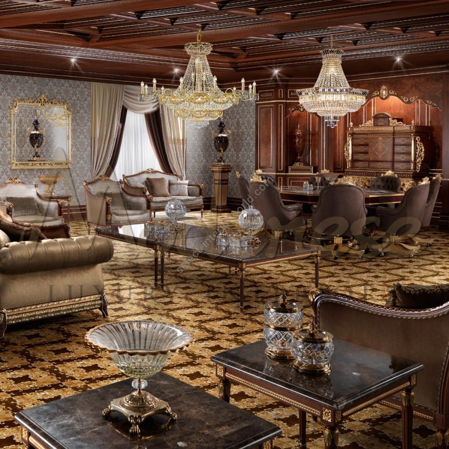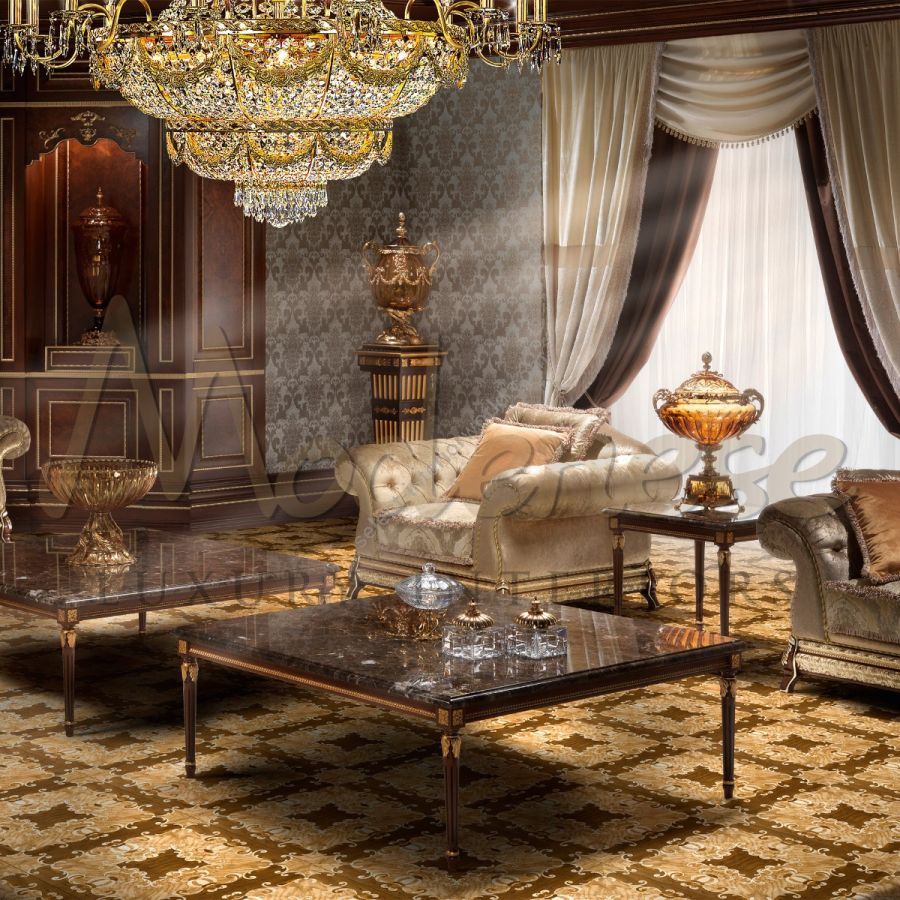 Enjoy the real Made in Italy luxury lifestyle with this hand-decorated square coffee table. Emperador Dark marble top, solid empire-style wooden structure hand decorated with gold leaf details. And ask yourself: what else would I need to impress my guests and express my majesty? Nothing but Modenese Furniture.