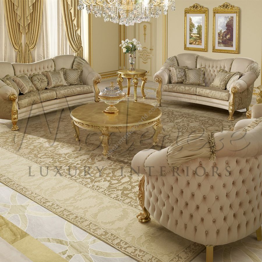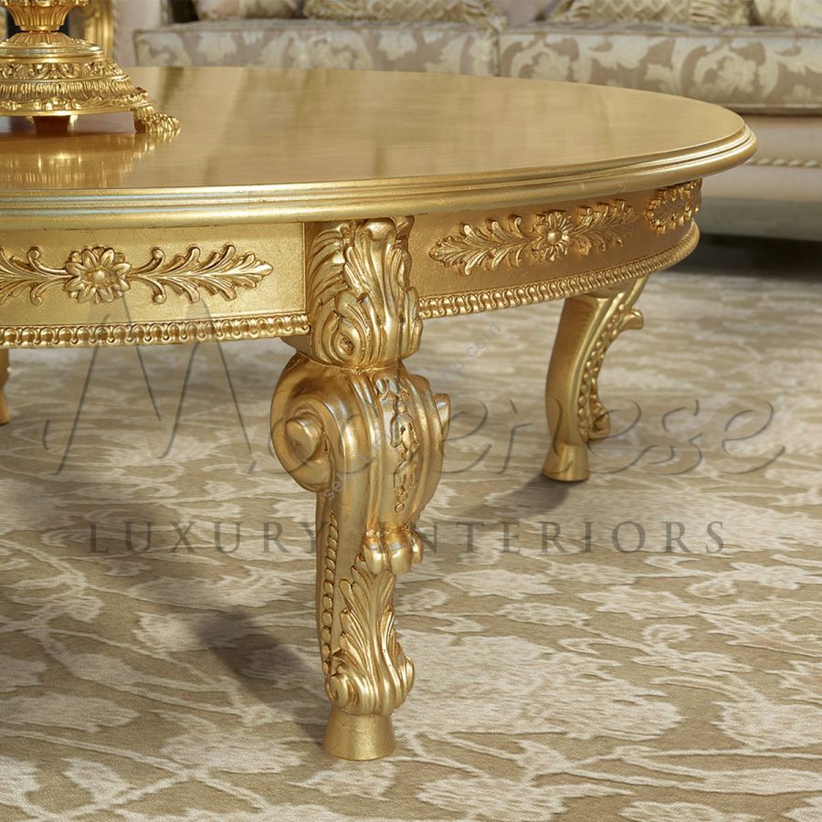 This lavish masterpiece features a resplendent top and structure adorned with the finest gilded 24-carat gold leaf, reflecting unparalleled sophistication and refinement. Each facet of this exquisite coffee table is a testament to the artisanal mastery of our craftsmen. The shimmering gold leaf, meticulously applied by skilled hands, bestows an aura of timeless elegance upon the table, casting a mesmerizing glow that captivates all who behold it.