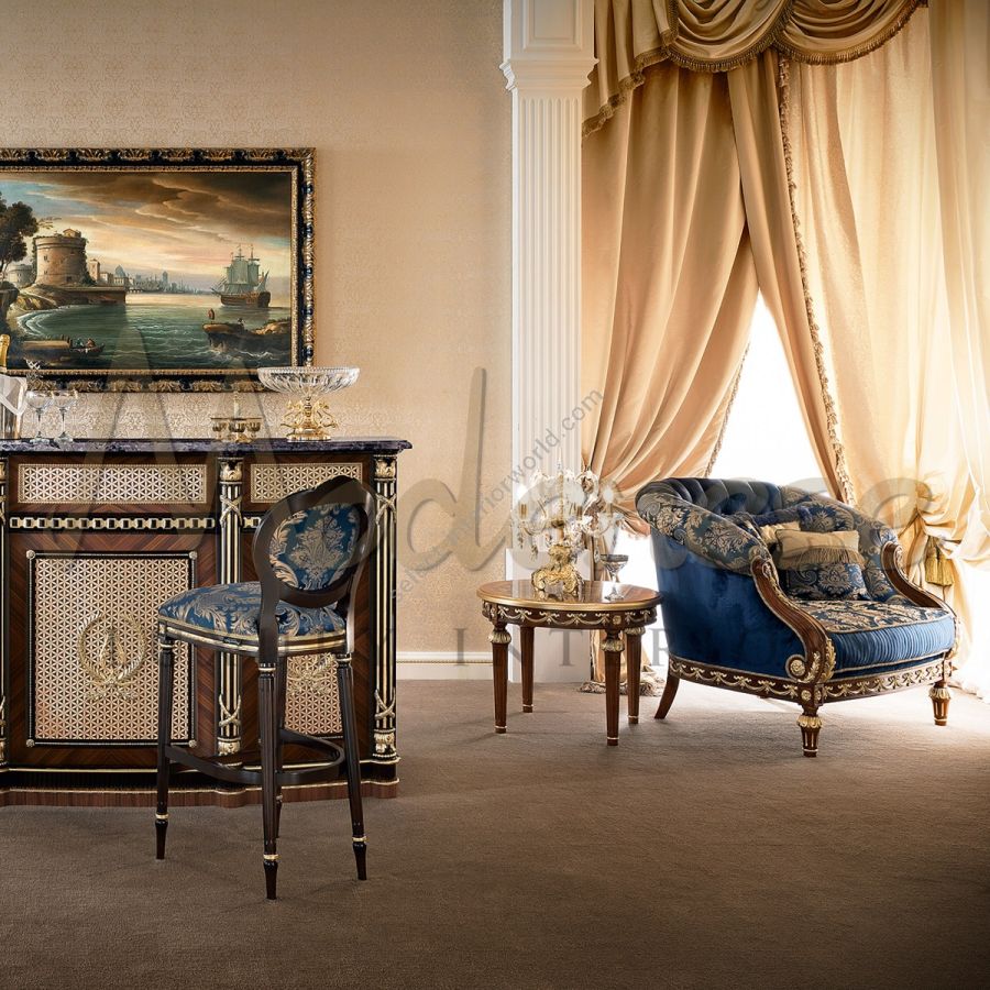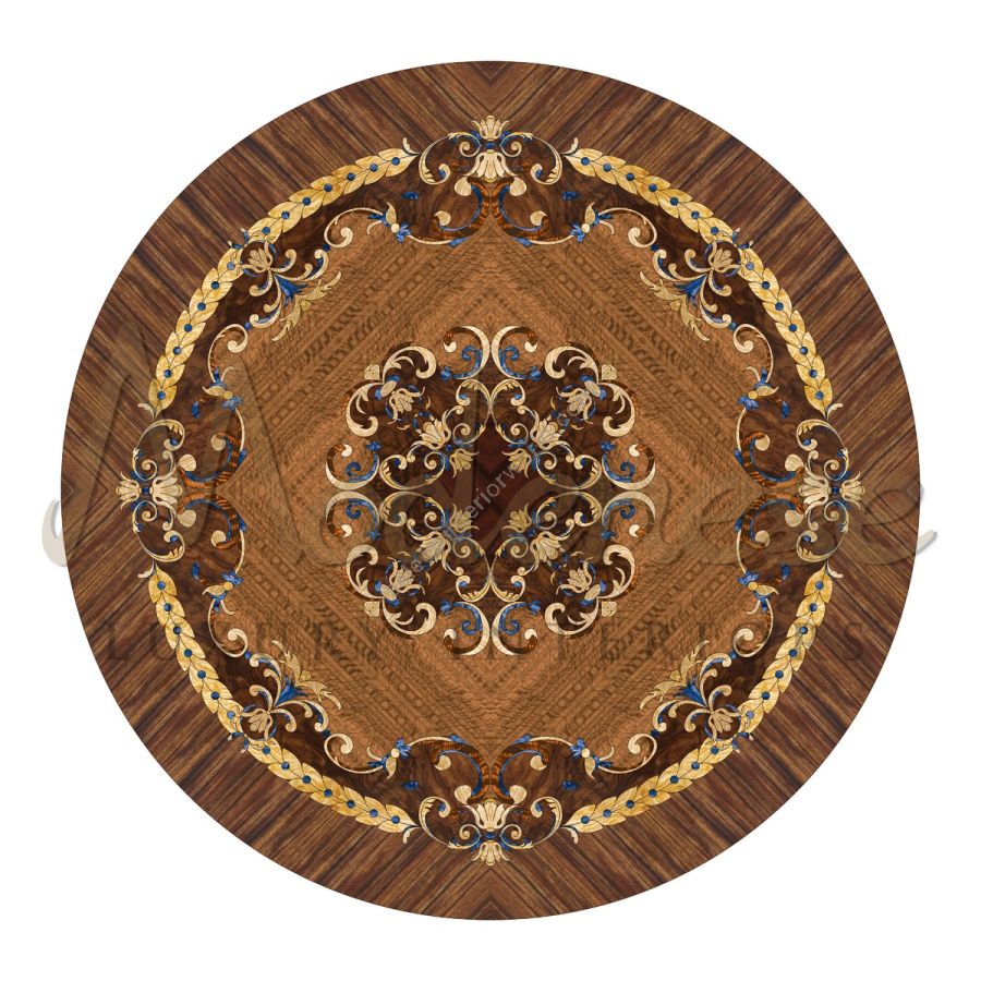 Modenese Furniture is specialized in providing the highest quality standards to its VIP clients. This round side table features a hand-inlaid top surface that expresses the finesse of the brand's skilled artisans of the wood inlay work. Such a piece is most suitable in classic living rooms with baroque furniture and design.