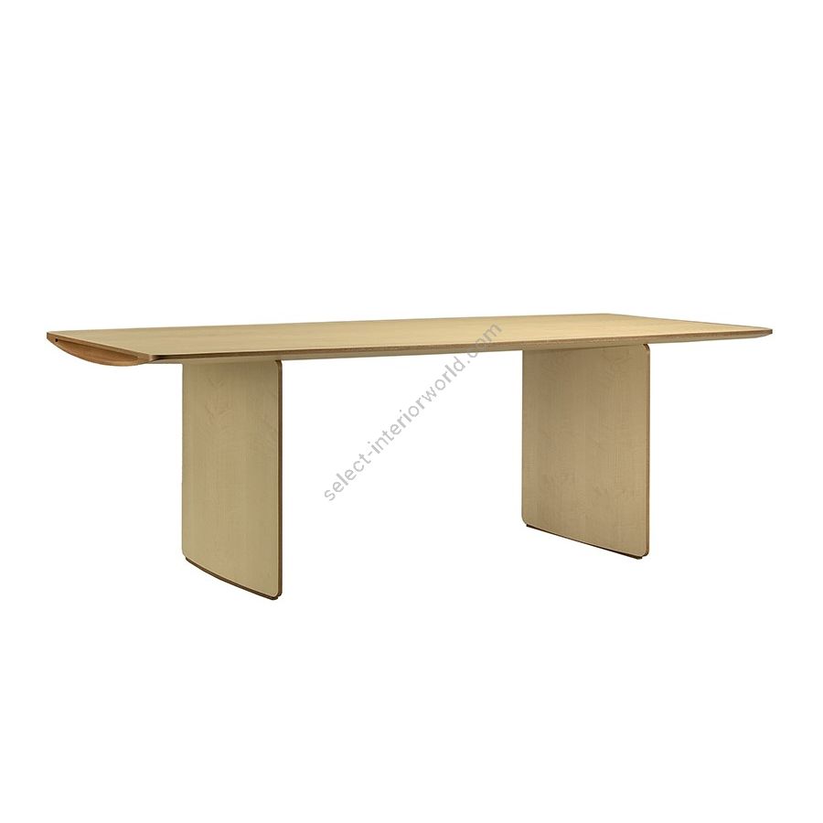 The Aero, designed by Franco Poli for Morelato, is a table consisting of two plywood panels, one of which is curved, joined together. This technique is used both for the top as well as for the feet of the table. In this way, the stability of the table is ensured even if the thickness is considerably reduced.