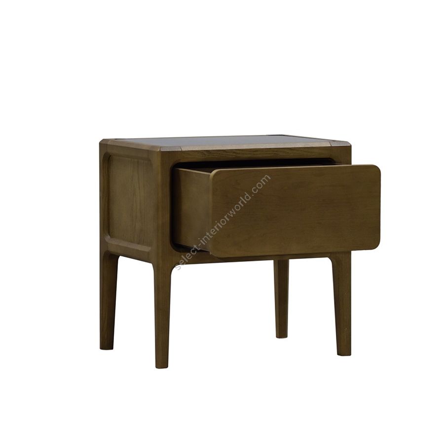 Bedside table made of ash wood with a drawer, top in leather or wood.
