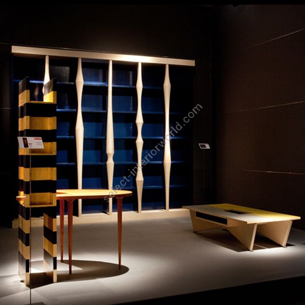 Open storage cabinet with cherry wood frame, blue lacquered. Base, top and front columns in maple wood.. MEASURES: L 300 W 40 H 270 WEIGHT: 250 kg M3: 2 PIECES: 17 Production time: 60 days. Shipping included in the price.