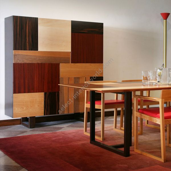 In cabinet making Patchwork stands for the use of small pieces of different wood kinds, which exalt each other in elegant combinations. Duranti has used this technique to create drawers, doors, cabinet doors, flaps and unpredictable openings, which Morelato turned into unique pieces of sideboards, tables, coffee tables and bookcases that will be highlights in different home styles and cultures.