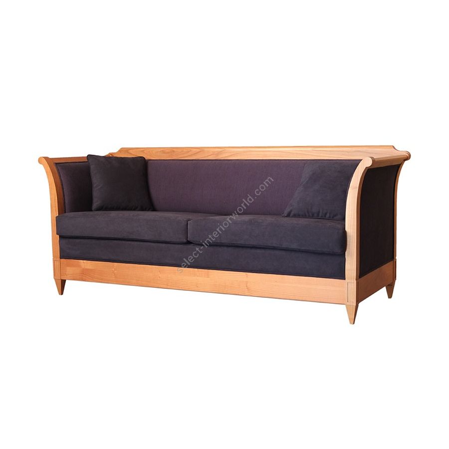 The Verona living room furniture collection is composed of several different elements all characterized by the peculiar shape of the high armrests, and back. The frame is made of carved solid cherry wood, which defines the outer perimeter of the Verona armchairs and sofas. Accurately upholstered and finished with double ribbing in the same material.
