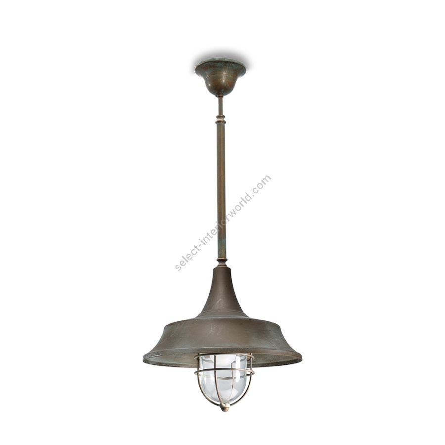 The Outdoor Pendant Brass Lamp from the Atelier collection by Moretti Luce is a masterful blend of timeless design and durability. Crafted from die-cast brass and brass plate, this lamp showcases exceptional Italian craftsmanship. Its available finishes, including antique copper-plated brass and dark brown, are specifically treated to withstand harsh conditions like salt air, snow, or exposure to calcium-rich water, making it a perfect choice for coastal or mountainous environments.