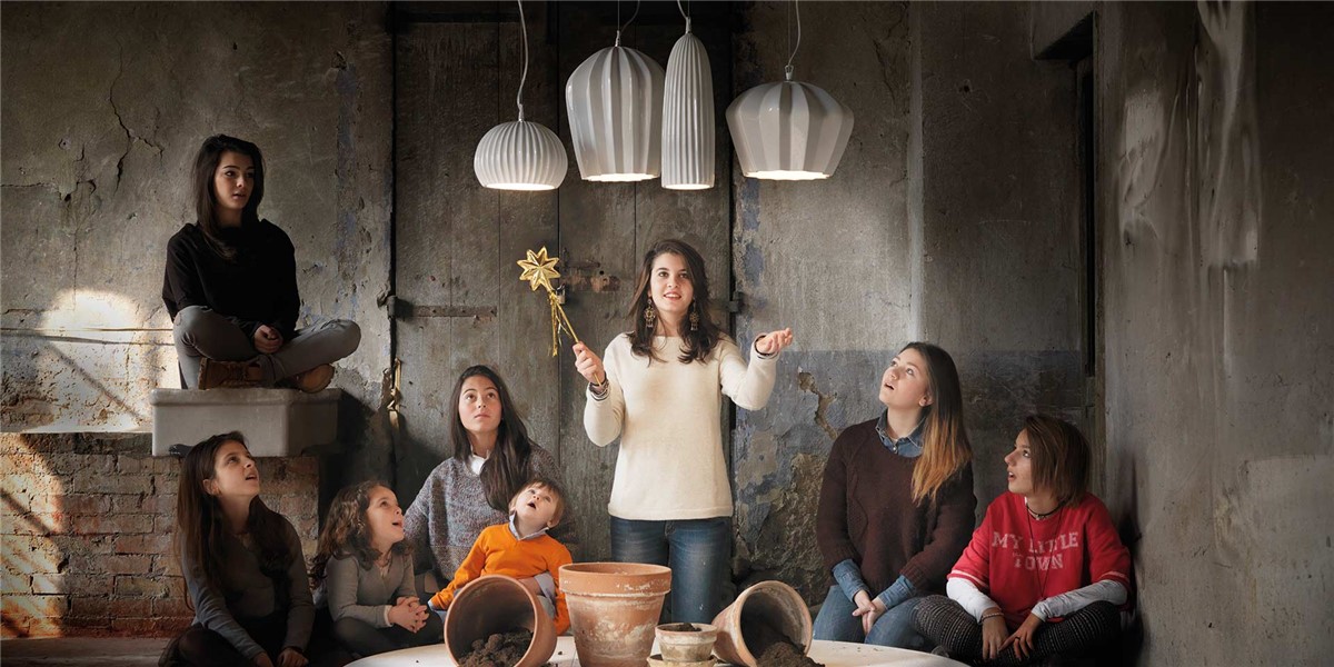 The suspension has a bright white or emerald green ceramic lampshade that is inspired by the shapes of the large desert cactus. Each piece of the green version has a different hue due to a particular oxidation process. It comes in four different shapes and sizes, and can also be put together in clusters.