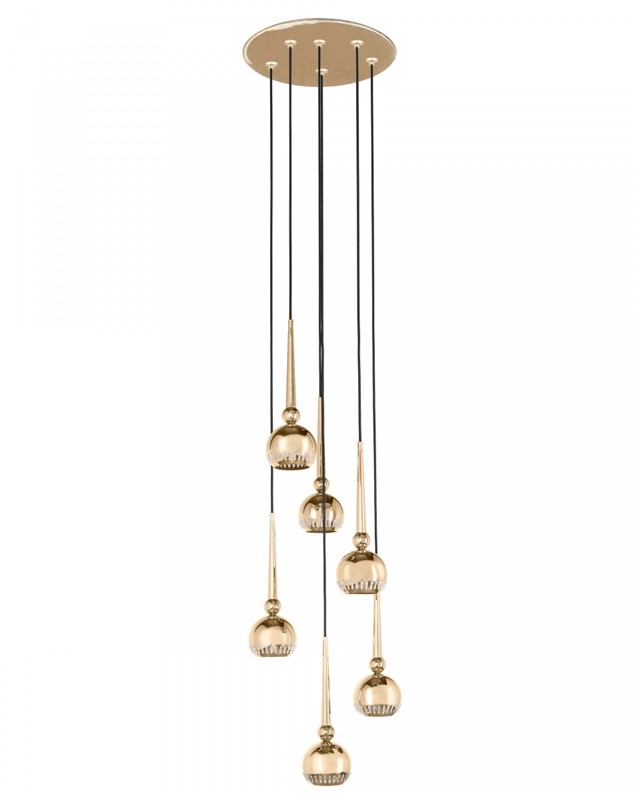 The Crystaline handmade suspension is transparent but graceful. This modern suspension lighting cherishes modesty, just as Modern design itself cultivates a sense of simplicity in every element, avoiding clutter or accessories involved. Having this concept in mind, the Crystaline lighting fixture was created. Round brass forms with very clean sophisticated lines are the base of this suspension lamp. Hanging crystals added to the bottom of the pieces, turn them into elite luxurious statement, and bring that desirable pure feeling. The Crystaline design has falling raindrops effect made with delicate crystals that shape the round “bell-flower”, slightly flattened structure. With a delicate though divine look, Crystaline is the ideal decorative lighting statement that, because of the outstanding sparkle of the crystals, is so exceptional, mystical and timeless. It can be the perfect feature to any type of modern interior décor.