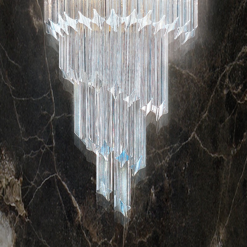 Rods made of murano glass, formed when still hot, available in the triangular or squared section or else in the more luxurious version made of optical crystal only in the triangular section.