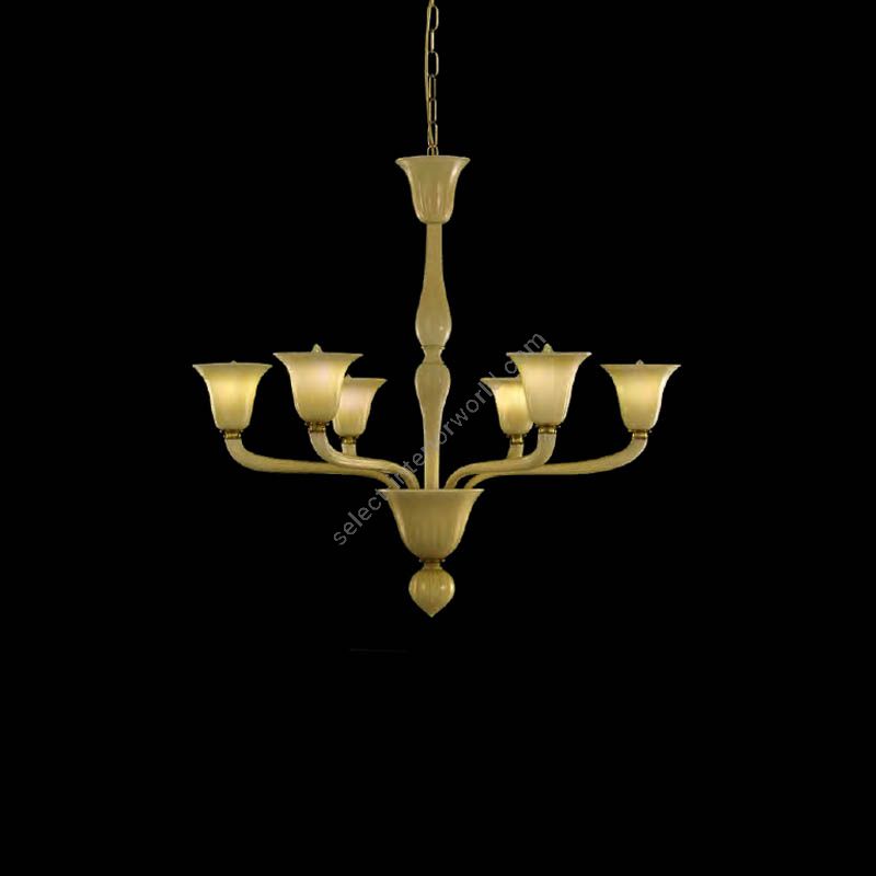 The design harks back to the Murano glass chandeliers typical of the Roaring Twenties. The classic glass chandeliers Bevante are characterized by basic and essential elements, such as the straight central arm. The "rigadin" texture (blown glass with straight ribs) creates beautiful reflections and contrast effects on the glass, the cups which cover the bulb is tapered.