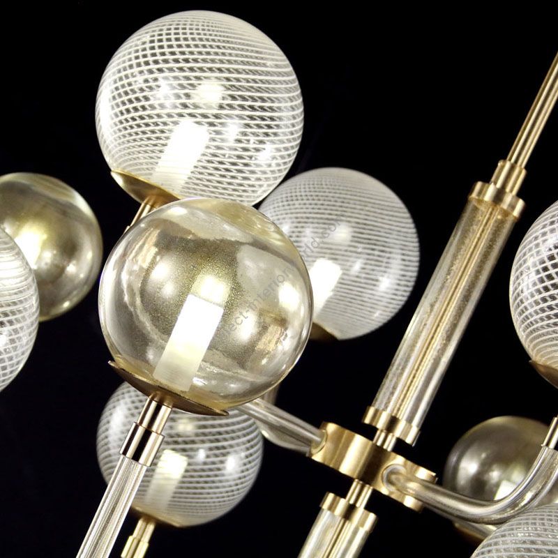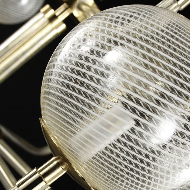 The precious mouth-blown glass spheres composing this lighting product are completely handmade by skilled glass masters and enclose the light source which also enhances the fine glass details.