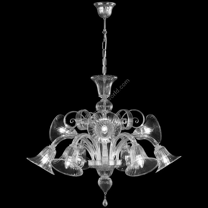 The blown glass chandeliers collection Capriccio 560 has the position of the lights, which are downwards. It is the best solution when the ceiling is not very high, without renouncing to the elegance and the magnificence of a venetian chandelier. As in many other collections by Multiforme, not only the structure but also the colours are innovative.