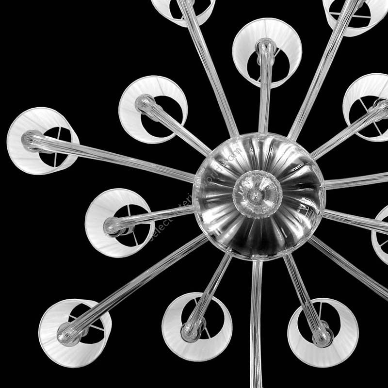 This optical effect, combined with the sheer silk plissè lampshades, contributes to the harmony and uniformity of the whole structure, which is a peculiar characteristic of each product of this collection.