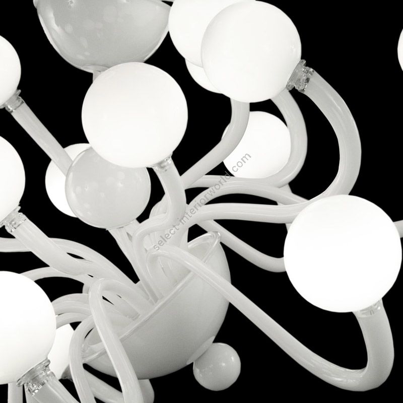 Dadaumpa is suggested in the catalogue in a milky white colour tone, but it can be customized choosing from a vast range of colours, both transparent and opaque. This chandelier in artistic glass gives its best if inserted in wide environments, that better enhance its magnificent structure with a great number of lights.