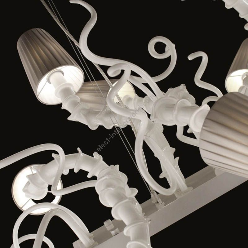 All the elements are handcrafted by our masters glass-worker, they are unique pieces that composed inimitable creations. The twisted glass elements and the Rezzonico arms are fixed on a clean white structure that contrasts with the glass decorations.
