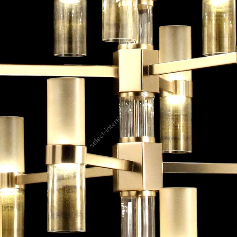 The elegant blown glass cylinders characterized by a pale gold color are alternated with transparent elements with gold leaf. These components enclose the latest-generation integrated LED light sources and recreate a warm and enchanting atmosphere.