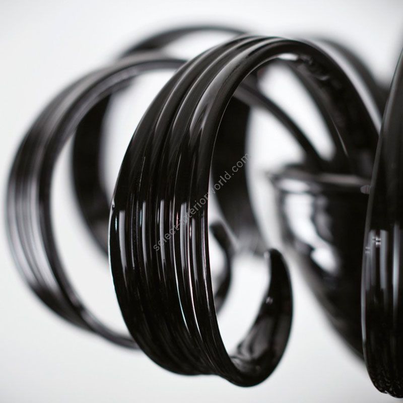 The luxury chandeliers IKO are a combination of glass elements designed with attention to details.The glass texture of this chandeliers is a combination of "rigamenà" (blown glass with twisted ribs) and "rigadin" (blown glass with straight ribs); the lampshades are made of plissé fabric.