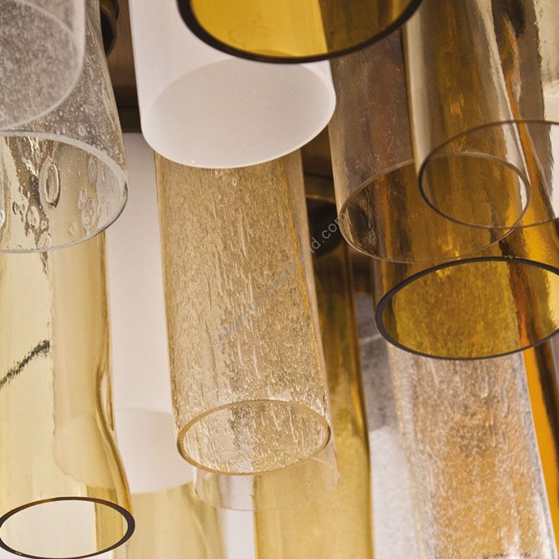 The quality of this lighting work lies on the techniques used and on the attention to details in the assembly of the various parts. The handcrafted glass decorations are extremely valuable. Each glass element is handmade, some dynamism is given by the dents on the tubular elements.