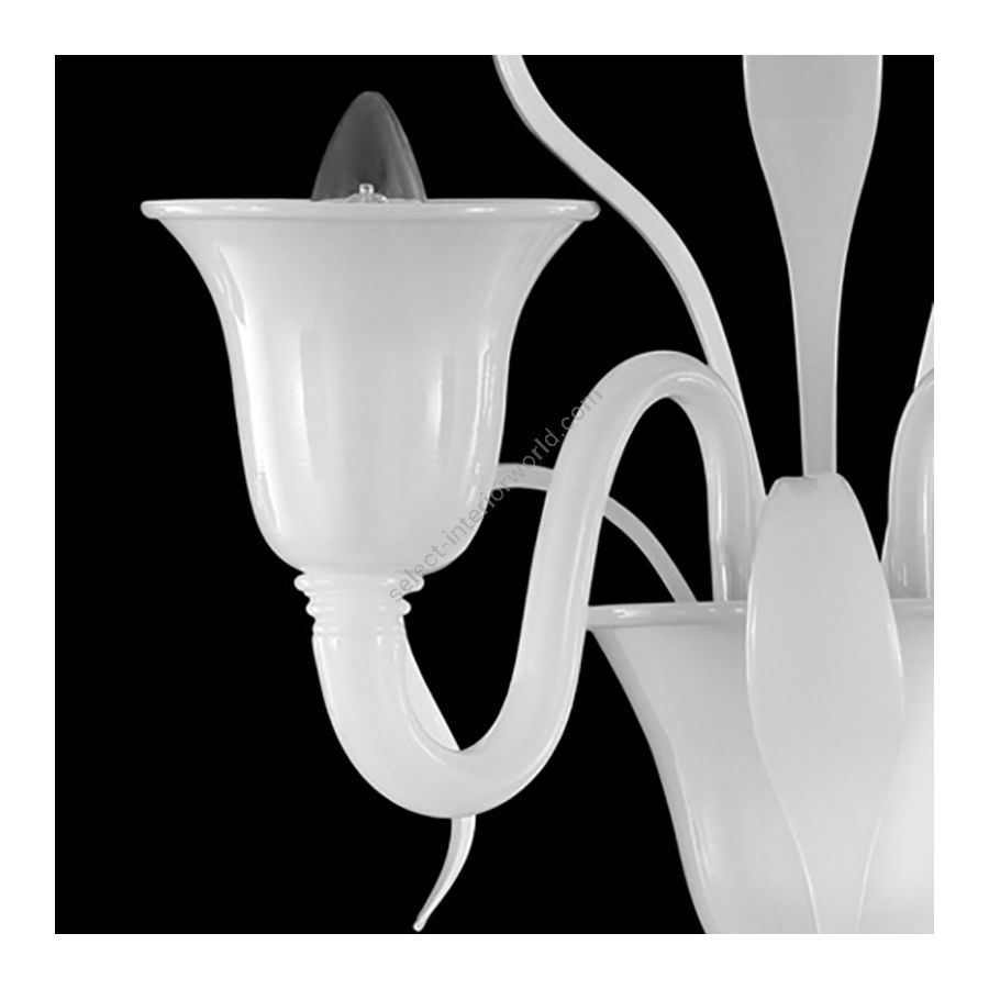 All the elements that composed the chandelier are made of blown glass, this confers to the lighting work a certain uniformity. This collection stands out not only for its design, but also for the colours available. Among the colours, it stands out the iridiscent amber, a particular shade of amber with iridiscent finishings, whose glares gives a magic atmosphere to the surrounding space.