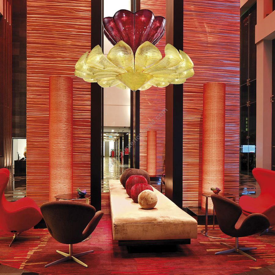 Precious installations in murano glass, individually forged hand made by glass masters. The harmonious modern sculpture forms, the refined work, the beautiful effects of light render the Chandelier Naga 2 an ideal solution for any environment.