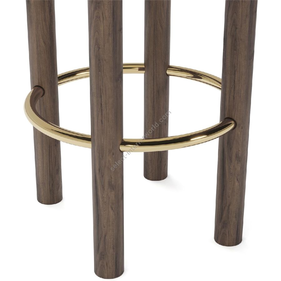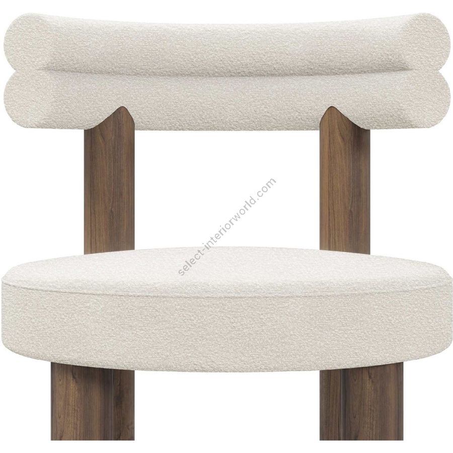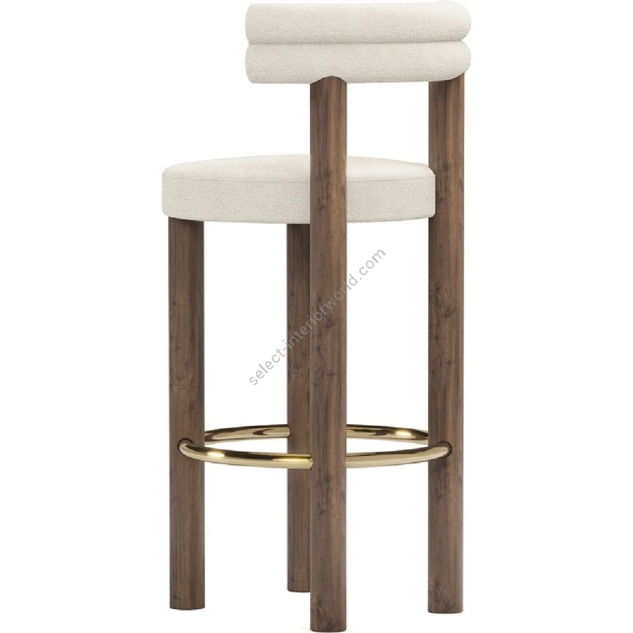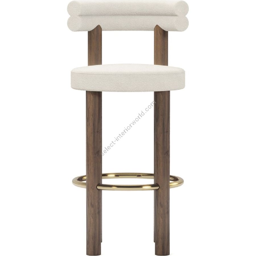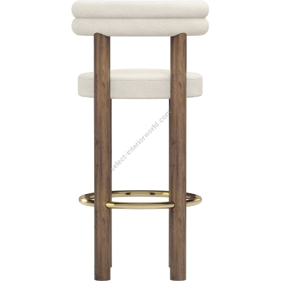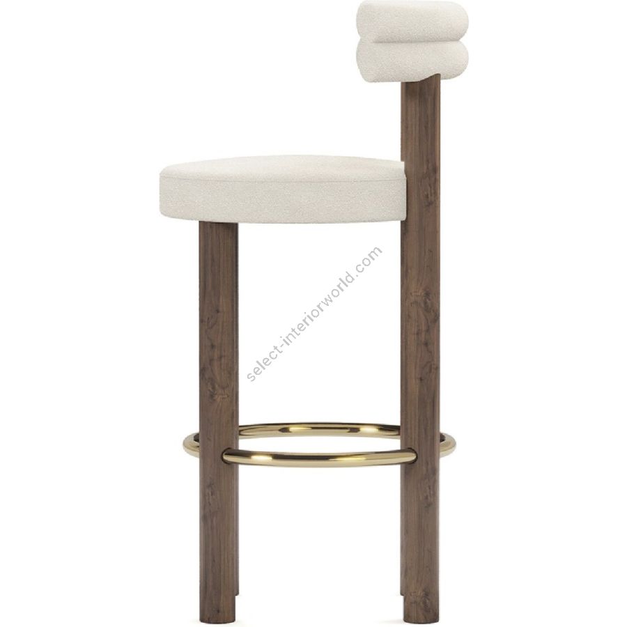 Upholstered in a soft, cream fabric, the Odette Bar Chair provides a plush seating experience that is both inviting and stylish. The chair’s backrest is uniquely designed with a double-roll cushion, providing excellent support and a touch of contemporary flair. The rich walnut legs offer a sturdy base and are complemented by a brass-finished footrest, adding a hint of glamour and ensuring lasting durability.