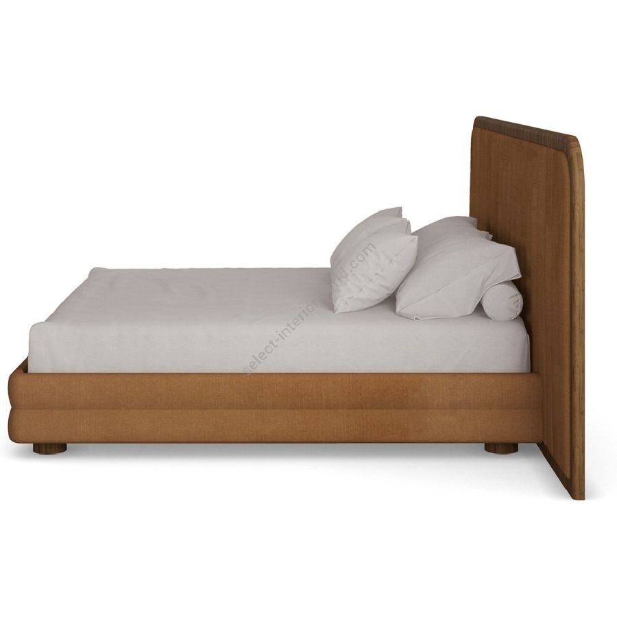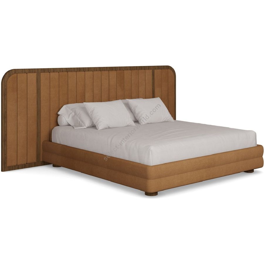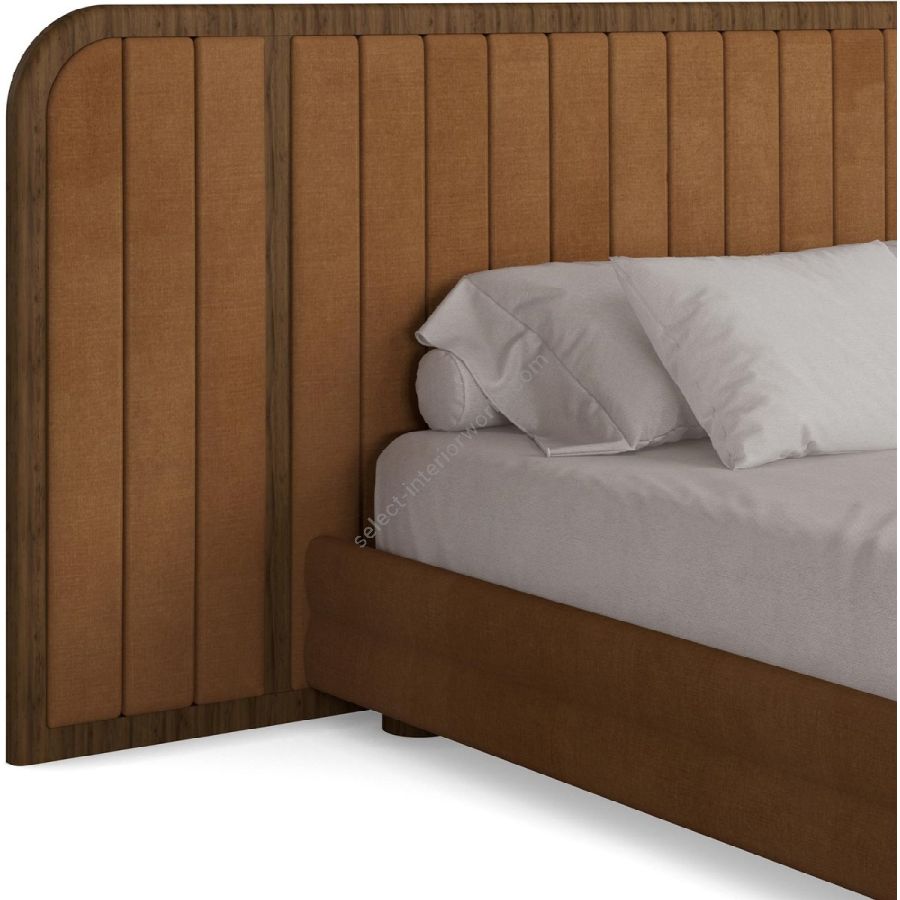 The Marthina Bed offers a perfect blend of luxurious comfort and modern design, making it an elegant statement for contemporary bedrooms. Featuring a design that emphasizes simplicity and elegance, this bed combines velvet upholstery with rich walnut wood accents to create a stunning centerpiece. The expansive headboard, gracefully curved with vertical walnut paneling, provides a sophisticated yet natural touch. Paired with a soft, plush velvet frame in a warm earthy tone, the Marthina Bed exudes a refined aesthetic that complements any interior decor. Built on a walnut frame, the bed ensures long-lasting durability and warmth. Its minimalist design is enhanced with smooth, rounded edges, while the upholstered headboard offers both comfort and support. Perfect for modern, contemporary, or transitional bedrooms, the Marthina Bed brings together natural wood elements with the soft elegance of velvet for a serene and stylish look.