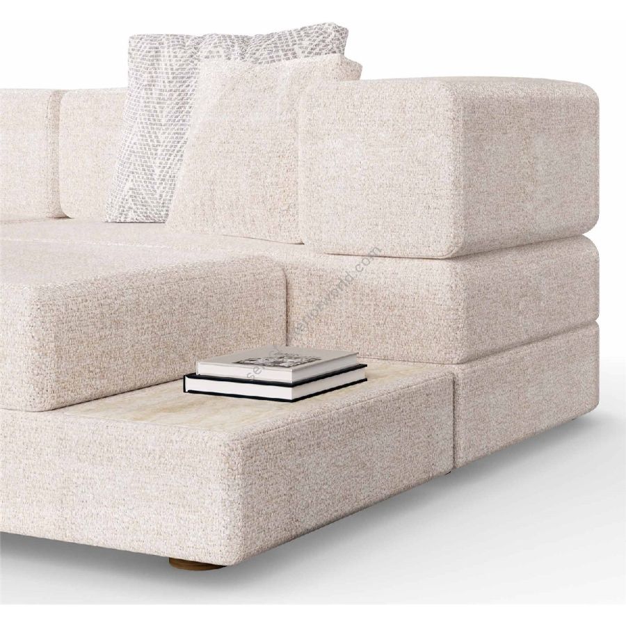 The Villa Modular Sofa combines modern design with unparalleled comfort. Featuring a sleek, modular design, this sofa allows for endless configuration possibilities to perfectly fit any space. Upholstered in premium fabric, the Villa Modular Sofa offers a plush seating experience enhanced by its deep cushions and sturdy construction. The integrated side table provides both functionality and style, making this piece a perfect addition to any contemporary living room.