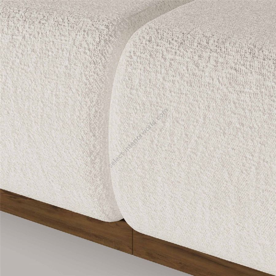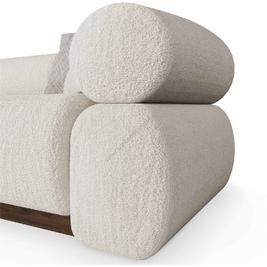 Nolita Harbour Soléne Sectional Sofa, a masterful blend of modern design and unparalleled comfort. This elegantly crafted sectional features plush, rounded cushions upholstered in premium fabric, ensuring a cozy and inviting seating experience. The sleek, minimalist lines of the Solene sofa are enhanced by its unique cylindrical armrests and sturdy wooden base.