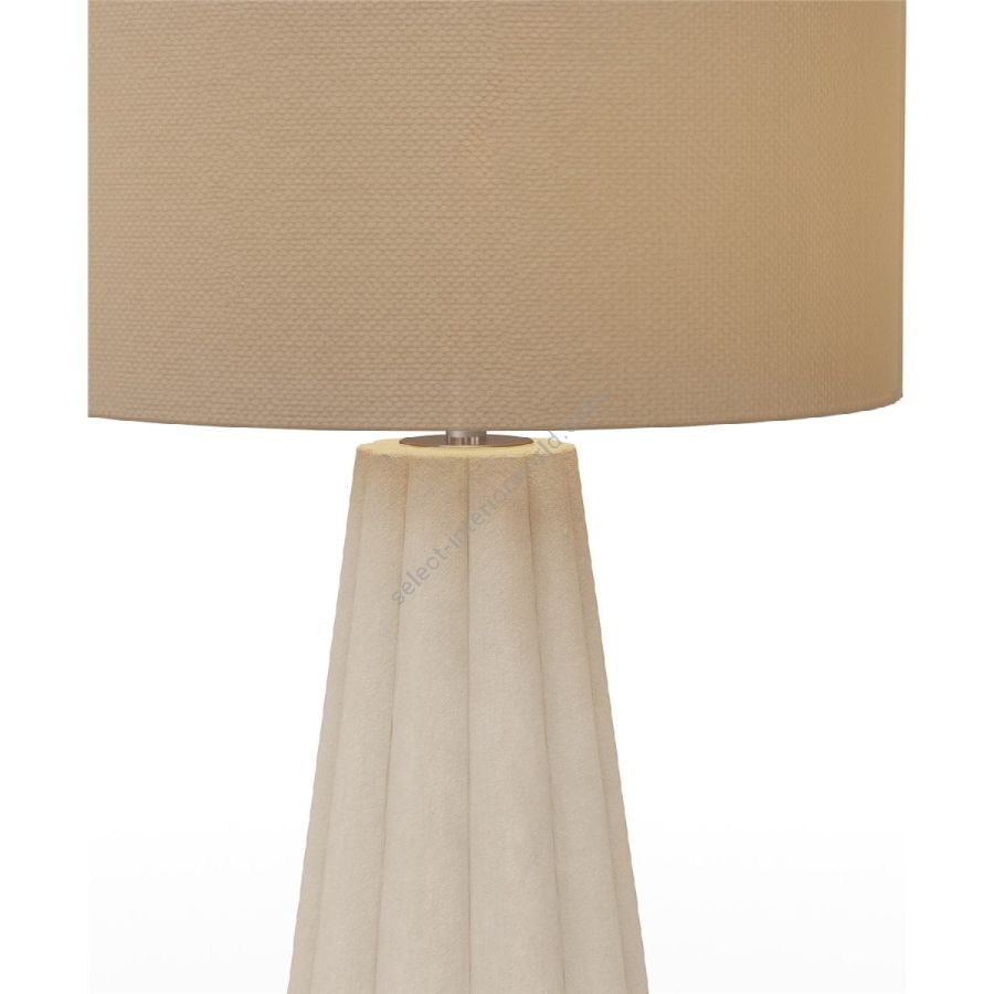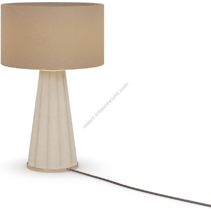 The Filp table lamp is a refined expression of texture and form, seamlessly blending artisanal craftsmanship with modern elegance. Its sculptural plaster base, featuring a softly fluted design, adds a tactile quality that enhances its organic appeal. The warm-toned fabric drum shade complements the natural finish, diffusing a soft and inviting glow that brings warmth to any space. Perfect for bedside tables, consoles, or accent corners, the Filp table lamp balances subtle sophistication with timeless simplicity, making it a versatile addition to contemporary interiors.