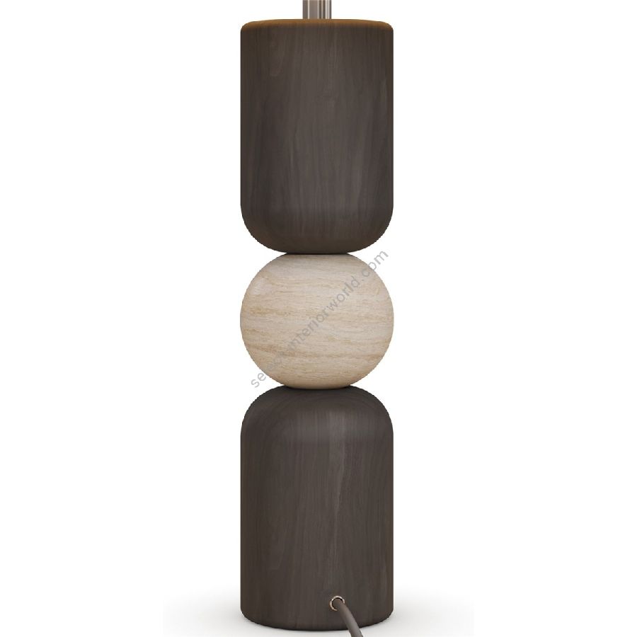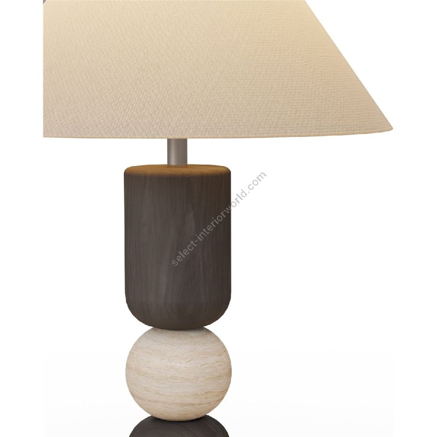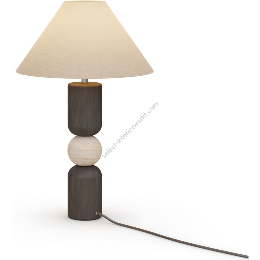 The Luuk table lamp is a striking fusion of geometric form and organic materials, embodying a bold yet refined aesthetic. Its sculptural base is crafted from black timber, with smooth cylindrical shapes stacked around a central travertine sphere, creating a dynamic contrast between dark wood and light stone. Topped with a classic tapered fabric shade, the Luuk lamp casts a warm, diffused glow, perfect for accenting bedside tables, consoles, or intimate living spaces. With its balanced proportions and timeless materiality, the Luuk table lamp is a sophisticated statement piece for contemporary interiors.