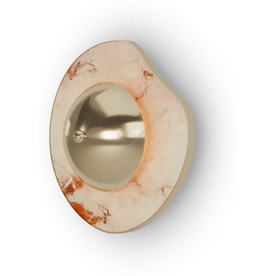 The Nenu wall lamp is a mesmerizing fusion of natural stone and polished metal, designed to bring sculptural elegance and ambient lighting to refined interiors. Its organic Aegean Rose marble backplate, with warm veining and fluid contours, creates a unique, nature-inspired aesthetic. Each piece of marble is distinct, ensuring that every Nenu lamp is a one-of-a-kind work of art.
