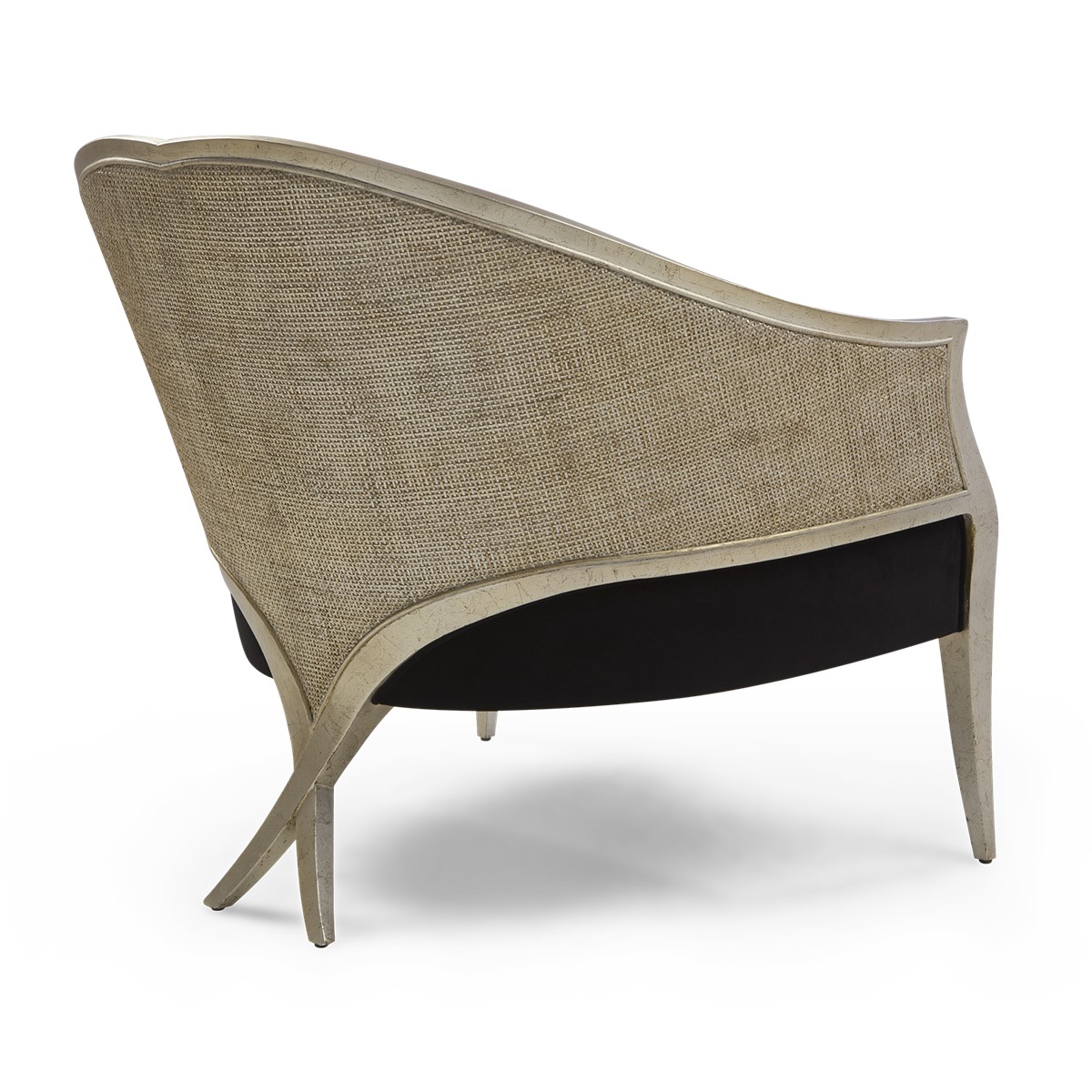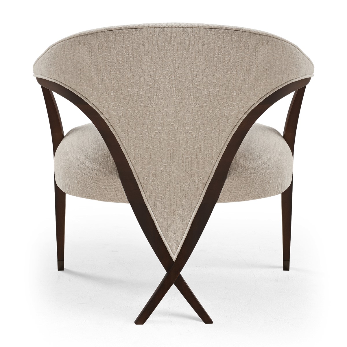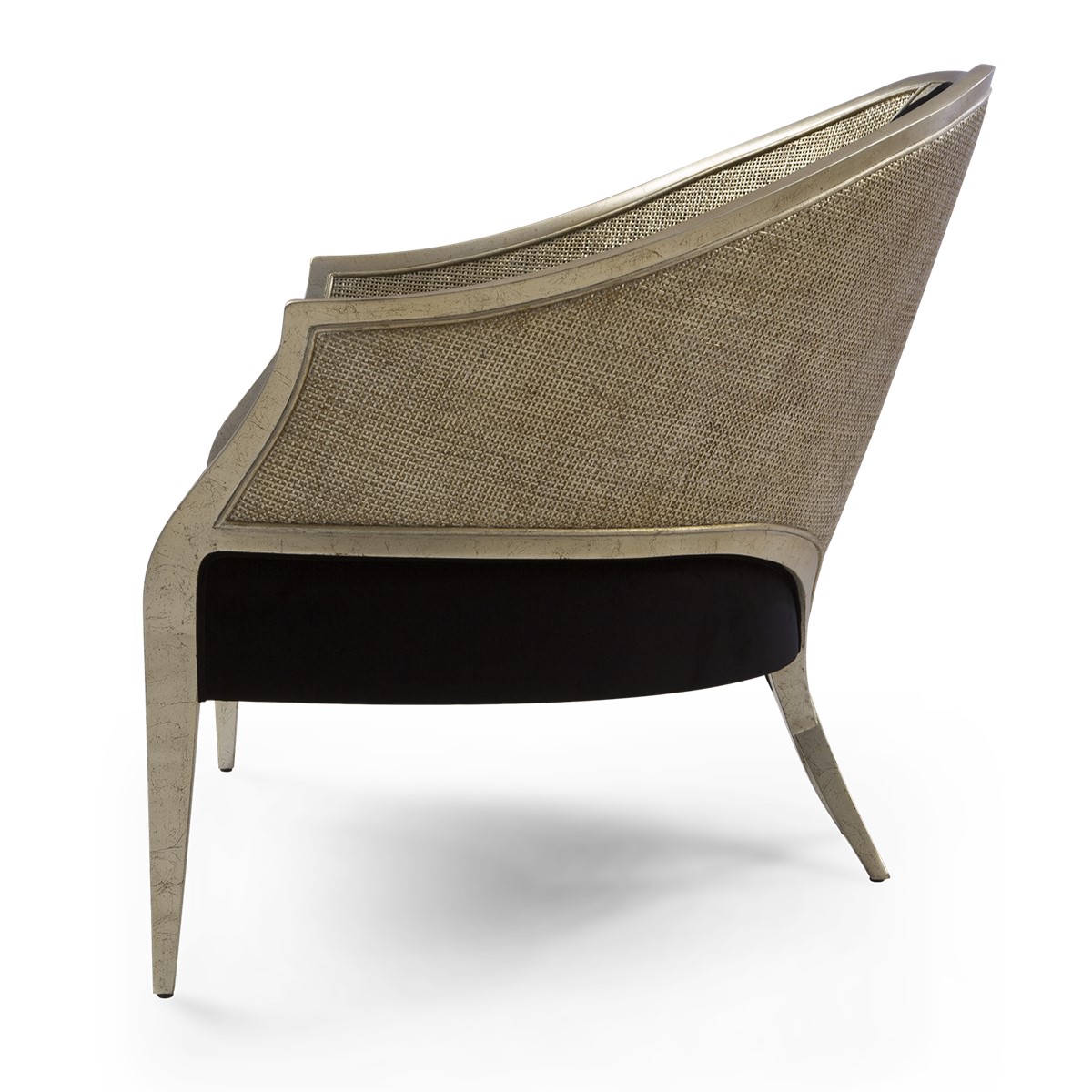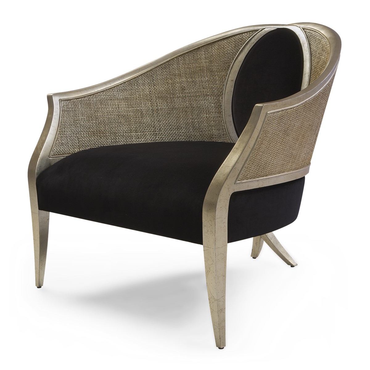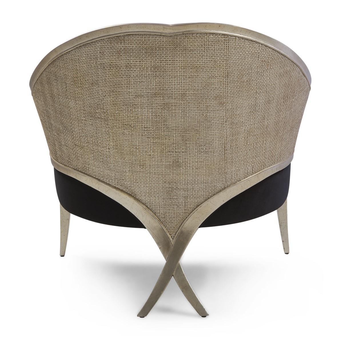 With its patented Chris-cross legs, this supremely elegant Bergère chair features a front oval detail, and linear front legs for a beautifully balanced appearance.