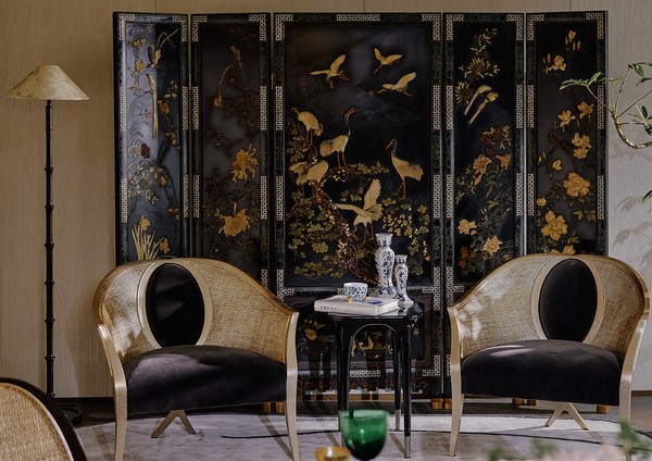 Doweled mortise and tenon frame in solid Mahogany from certified source. Sculptured by our Master-Carvers. Signature ""Chris-Cross"" patented legs. Tight seat undersupport with high-density upholstery fill. Hand-woven rattan, available in an array of finishes. Available in a selection of finishes. For residential use only. Commercial use is classified as Special Order Design (SOD), and alternative materials may be required. Contact us for details.