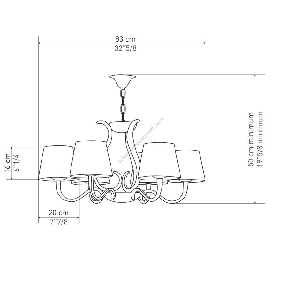 Width: 83 cm, Maximum: 6 x 100 w, Les Abat-jours peuvent être fabriqués dans 18 coloris au choix, The colour for the shades can be chosen out to 18 different hues