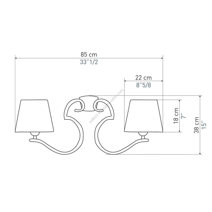 Width: 85 cm, Maximum: 4 x 100 w, Les Abat-jours peuvent être fabriqués dans 18 coloris au choix, The colour for the shades can be chosen out to 18 different hues