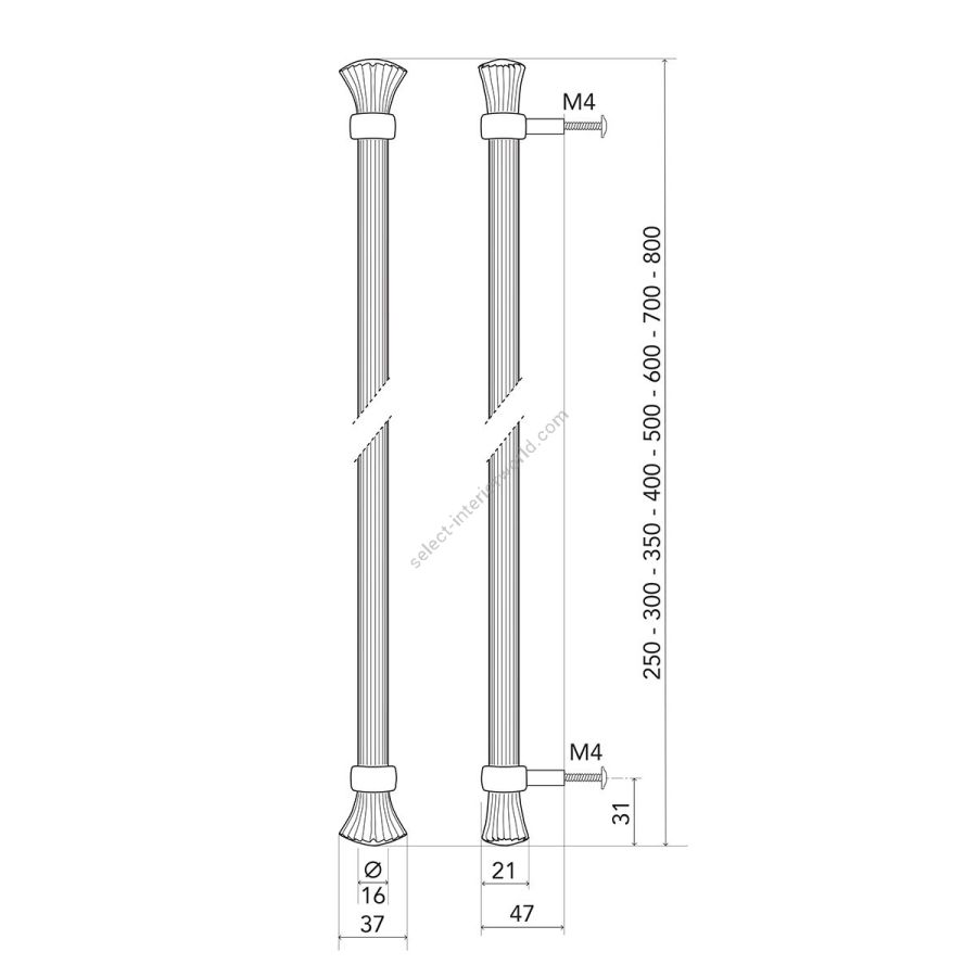 250 mm – 300 mm – 350 mm – 400 mm – 500 mm – 600 mm – 700 mm – 800 mm