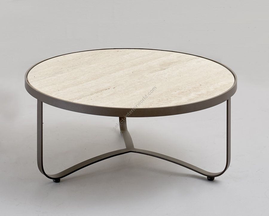 AISI 304 stainless steel coffee table with travertine top, powder-coated.