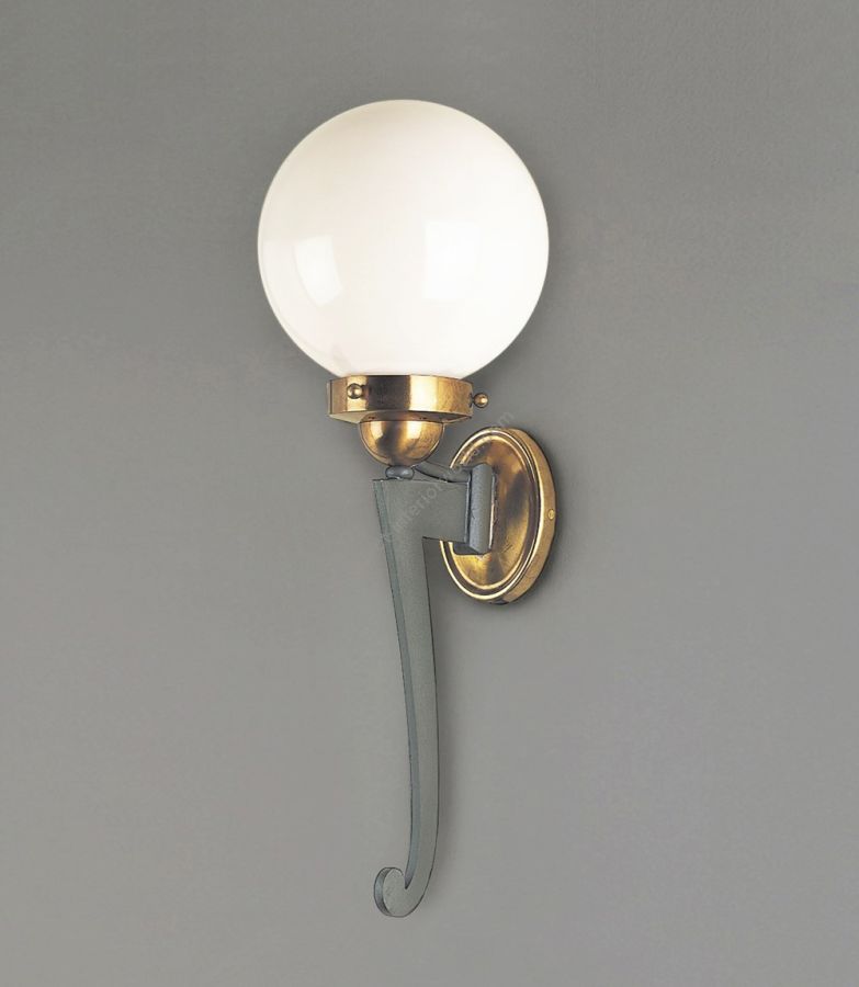 Iron and brass wall lantern with polycarbonate sphere, galvanized and powder-coated Lights : 1L x 40W E14