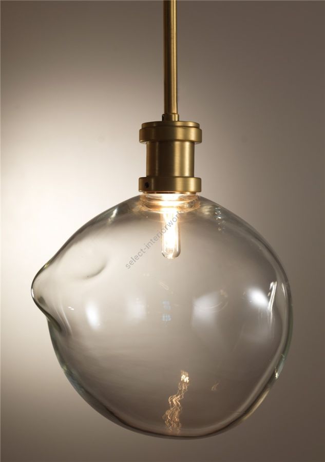 Suspension with brass attack and bubble in Murano glass. Designed by: OfficinaCiani & Ciarmoli Queda Studio
