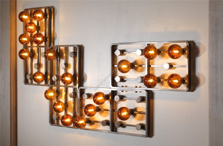 Brass modular wall lamp “Domino” with Amber glasses spheres Light : Alog. G9 variable number